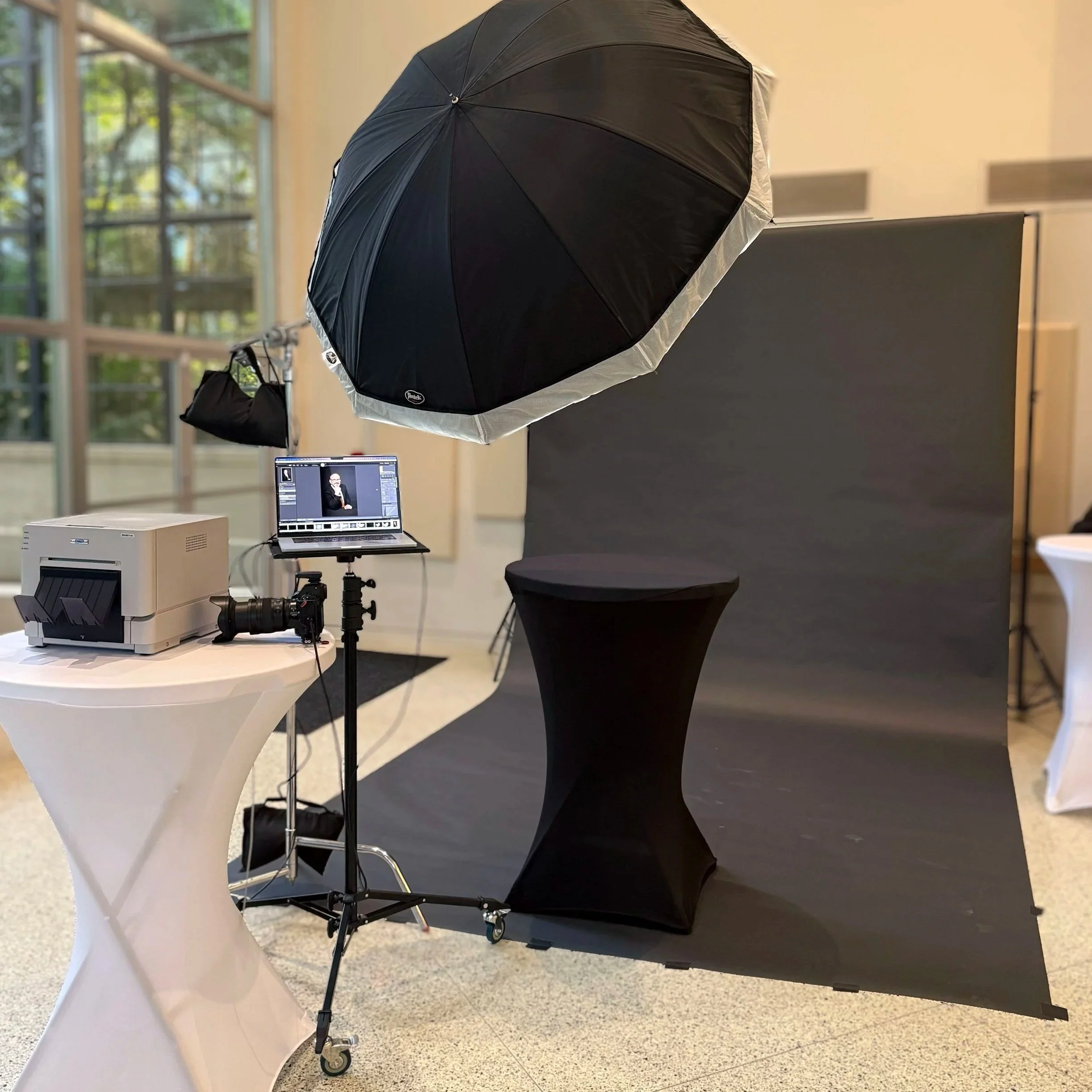 This experience feels more like a studio session than a booth. Each guest is positioned and directed, then photographed by a professional camera and photographer. The result is a consistent, editorial-style portrait that complements the overall look and tone of a wedding day.